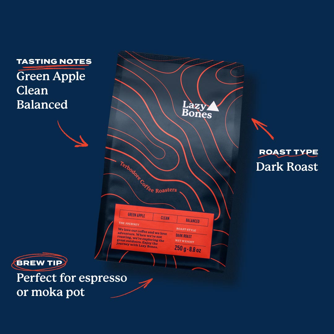 For espresso, we recommend our dark roasts, like our Great Dane or Mac Espresso. The caramelised sugars and deep, rich flavours shine through with a slight sweetness and a smooth finish. This profile gives you the bold, intense flavours you’re after in a perfect shot of espresso.