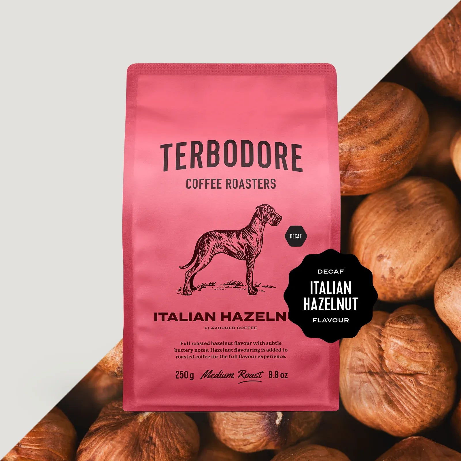 1x 250g bag decaf Italian Hazelnut Flavoured Coffee