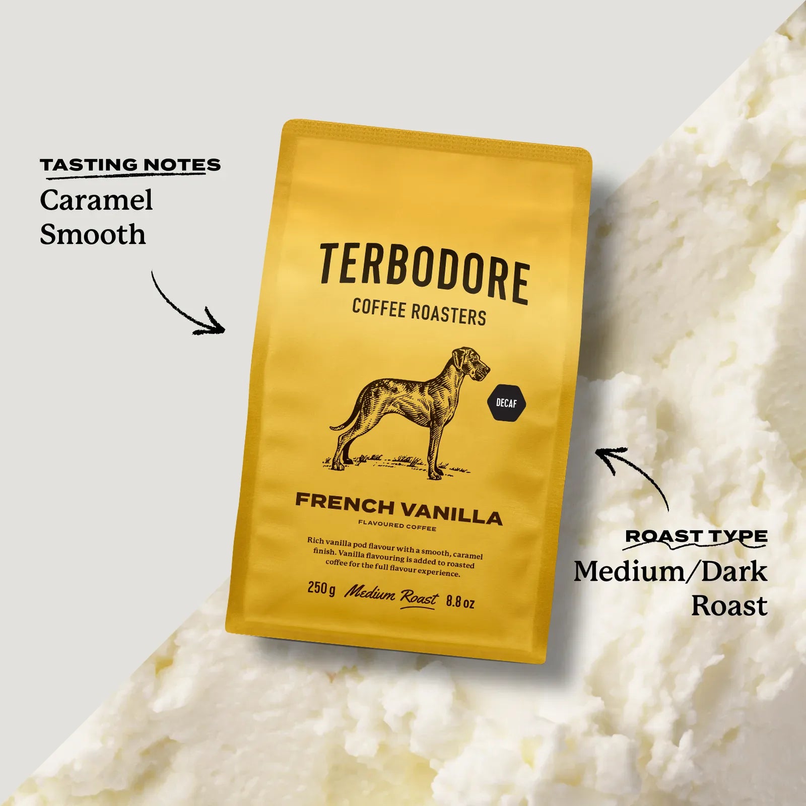 Sultan, our first Great Dane, stole everyone’s heart at our original roastery and became the perfect symbol for TERBODORE with his gentle nature and big personality.